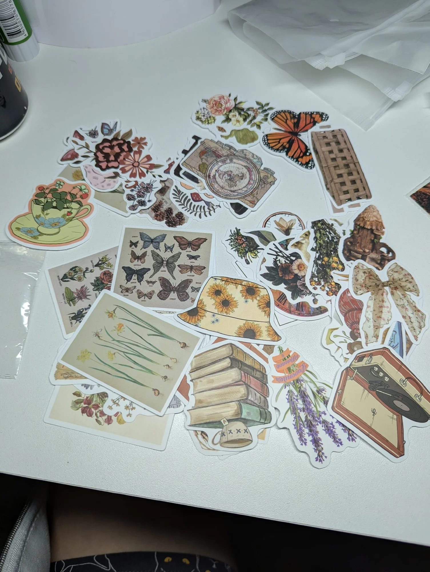 Close-up of high-quality PVC vintage aesthetic stickers with fade-resistant print