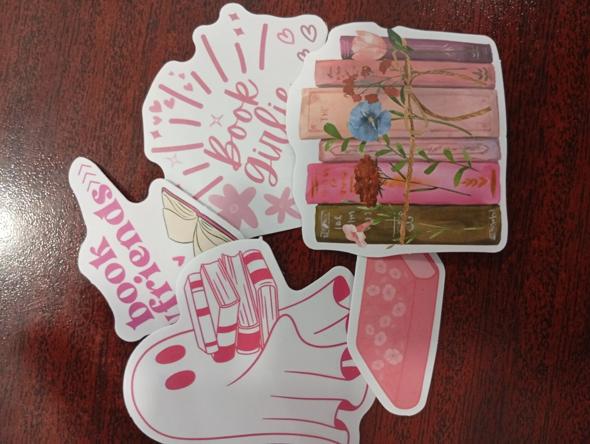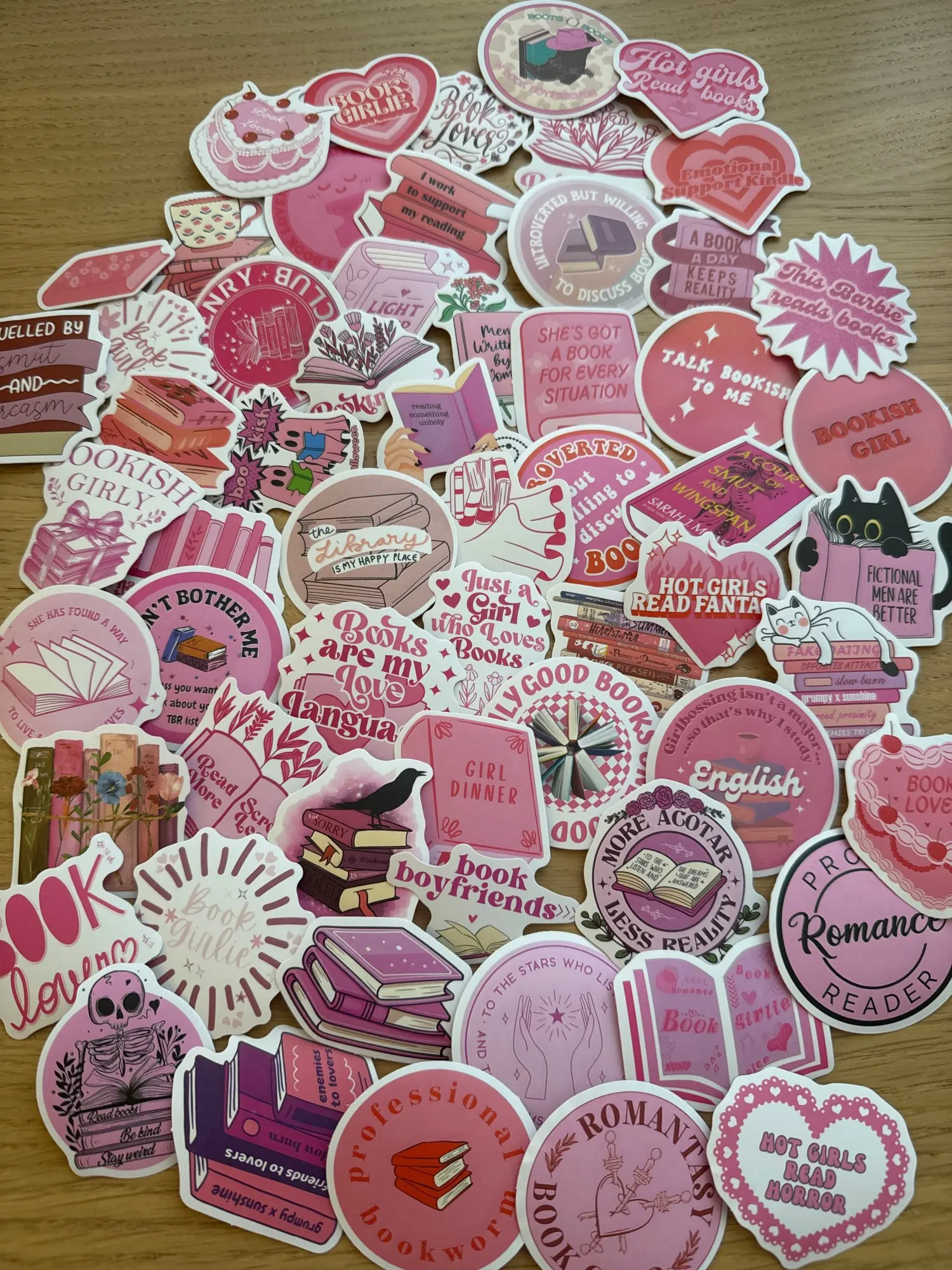 Add charm and personality to your everyday items with these cute pink bookish stickers