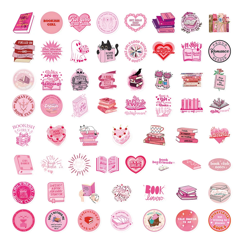 Pink Bookish Stickers 30/60PCS – Cute Waterproof Decals for Scrapbooks, Phones & Gifts