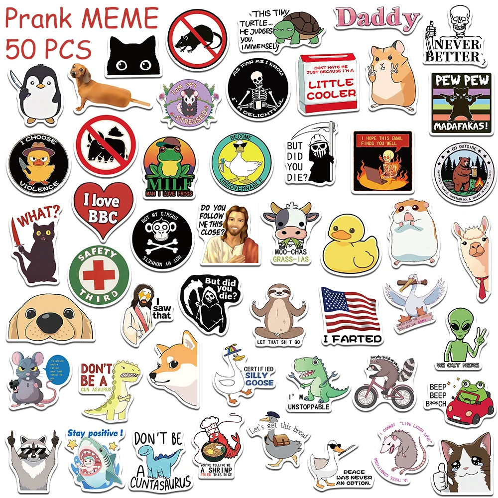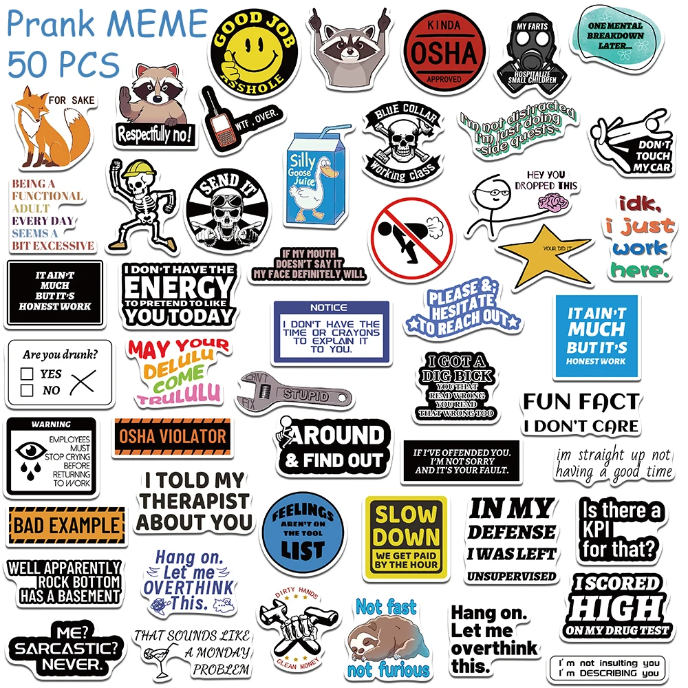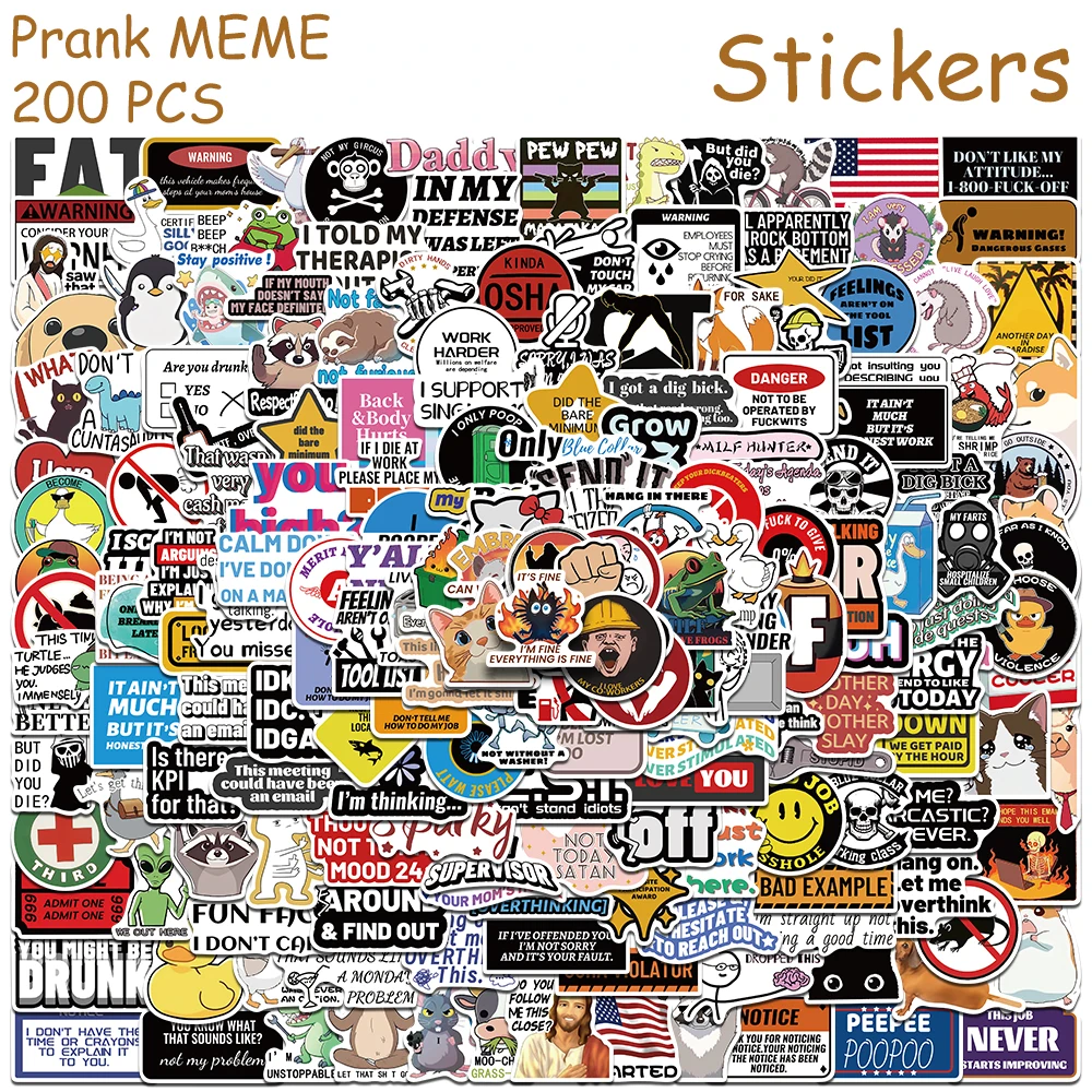 50/100/200PCS Funny Snarky Meme Stickers – Waterproof Cartoon Decals for Laptop & DIY Gifts