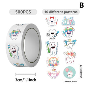 Cute Tooth Cartoon Stickers – 500 Sheets/Roll Dental Reward Stickers for Kids
