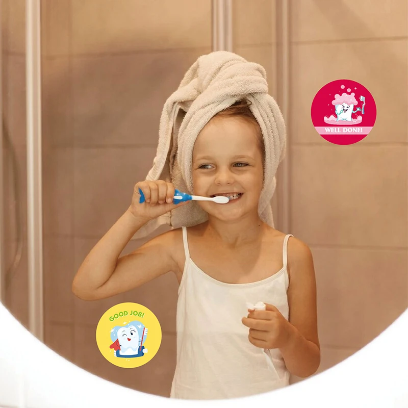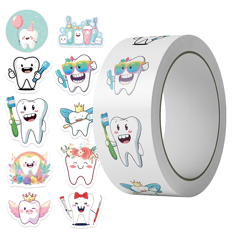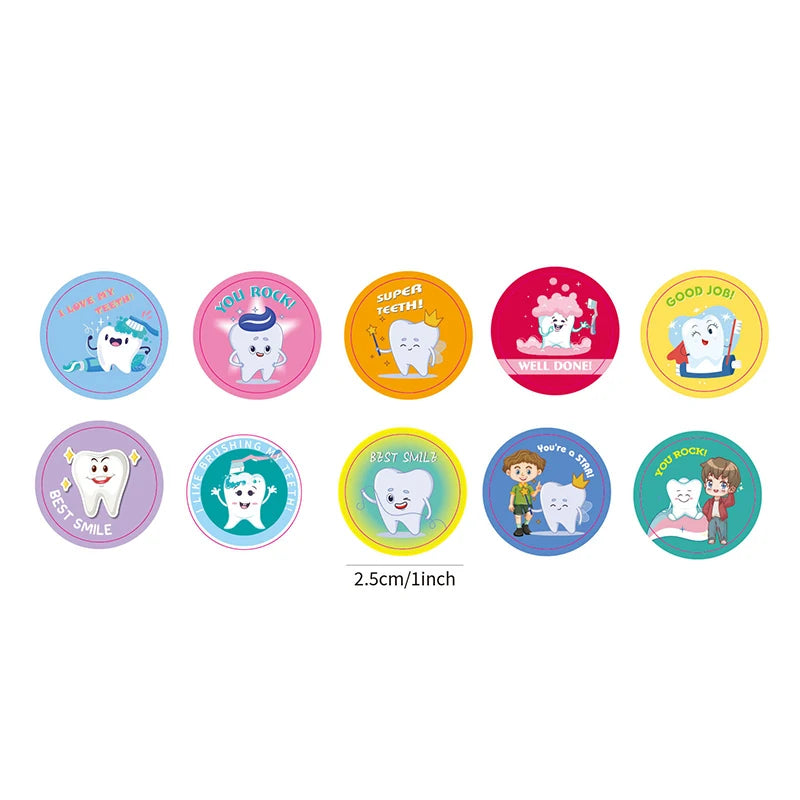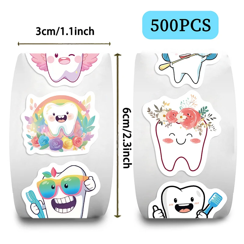 Includes 500 bright cartoon tooth stickers on a convenient roll