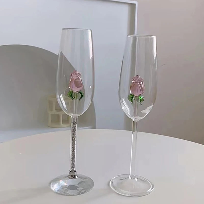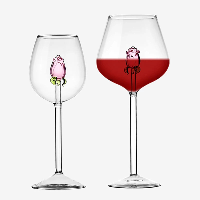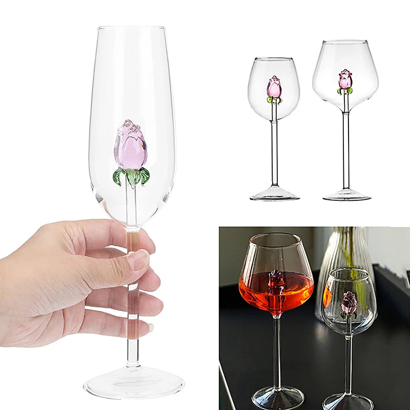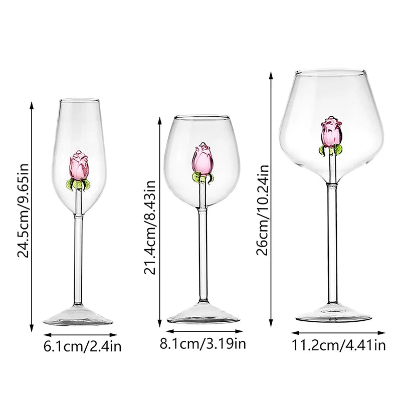 3D Pink Rose Wine Glass – Romantic Champagne Goblet for Valentine’s Day Gift