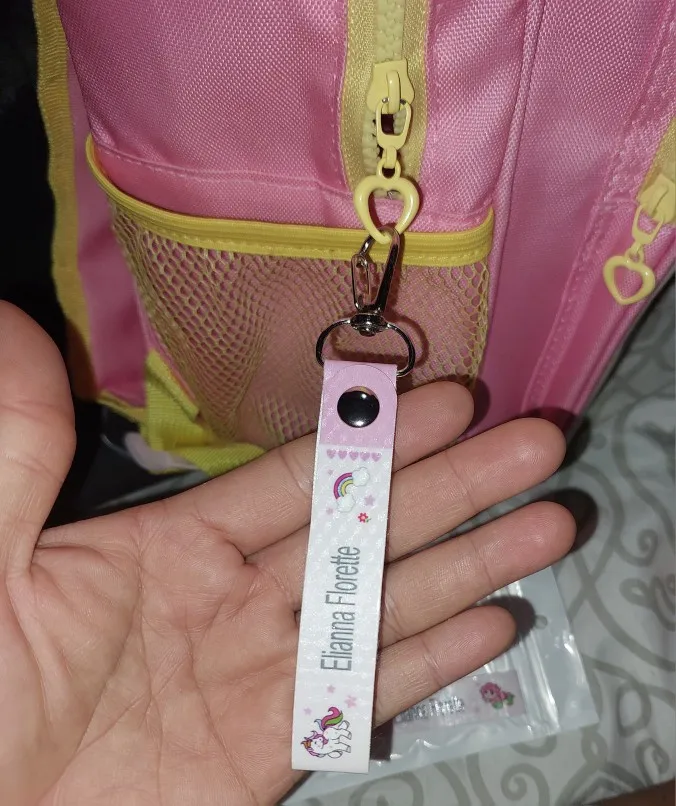 The personalized name helps quickly identify and return lost school bags or items.Can I customize it with any name?