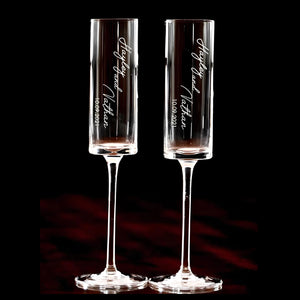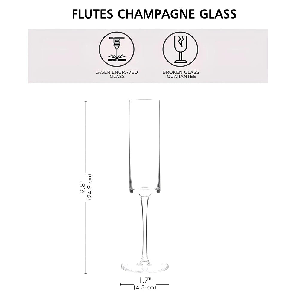 Each champagne flute is expertly made and laser engraved with attention to detail, ensuring a refined finish, lasting quality, and a personalized design you’ll treasure.
