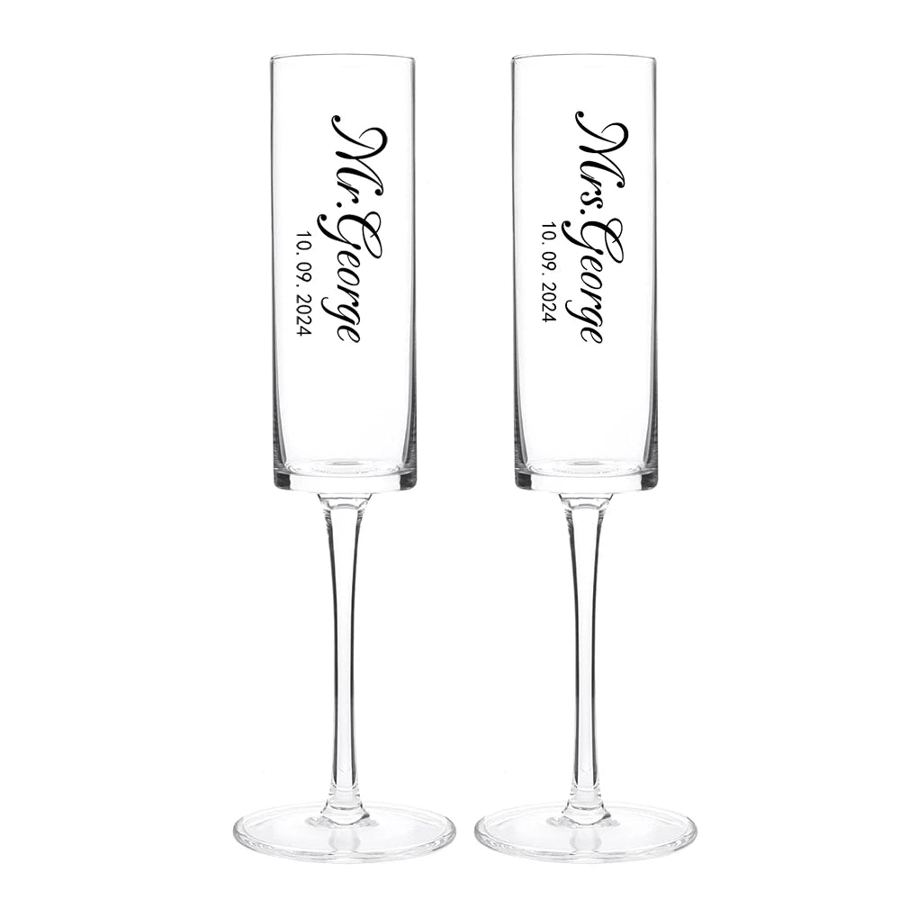 Personalized Wedding Champagne Flutes – Custom Laser Engraved Bride & Groom Toasting Glasses